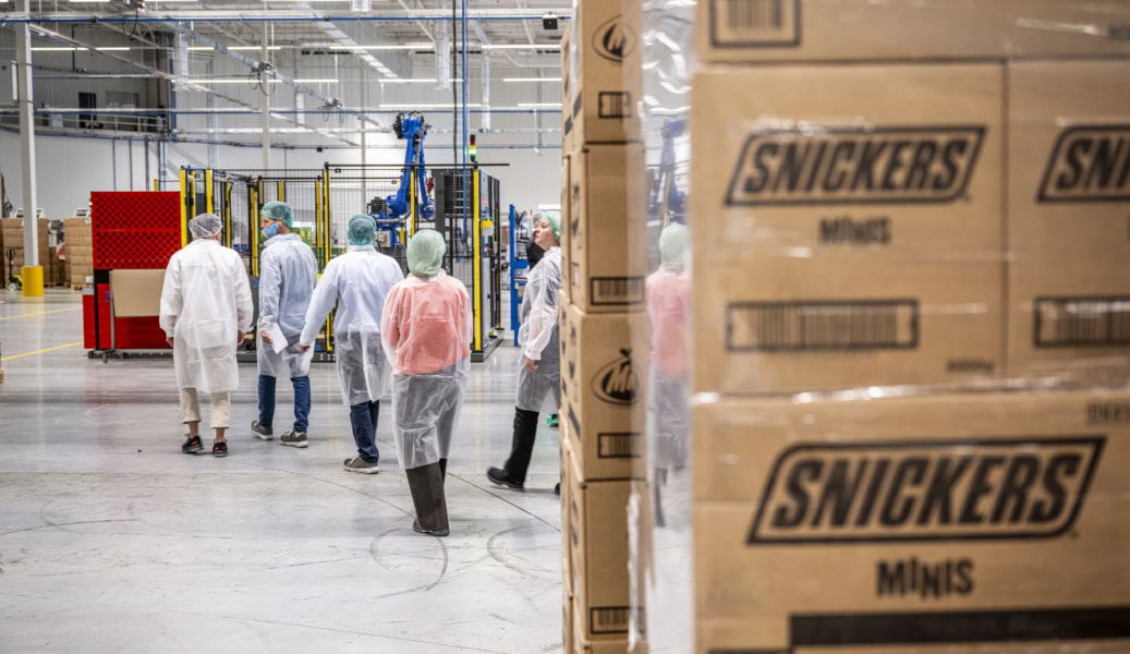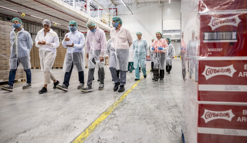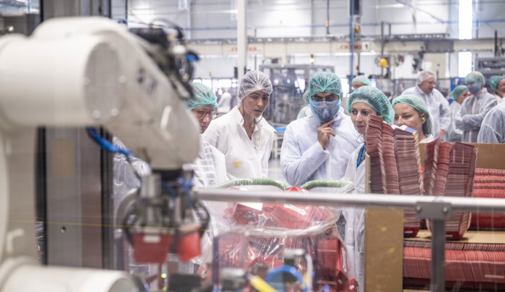 Vervolgens was het podium voor de fabriek zelf. De toer was het moment waar iedereen naar heeft uitgekeken. “Wij zijn trots dat we de nieuwbouw kunnen tonen, en Mars-medewerkers vinden het mooi om alle lijnen te zien werken”, aldus Jeroen. Sam de Frates, directeur inkoop bij Mars, beaamt dat. “Geweldig om dit na alle gesprekken daadwerkelijk te beleven. We konden al rekenen op betrokken mensen en nu ook op een shiny fabriek. Dit is een grote stap voorwaarts.”
